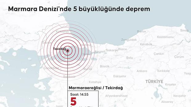 Tekirdağ’ın Marmaraereğlisi ilçesinde, 2 Ekim 2025 Perşembe günü saat 14.55’te büyük bir deprem meydana geldi. İstanbul, Yalova, Kocaeli, Bursa gibi çevre illerden de hissedilen bu sarsıntının şiddeti 5.0 olarak belirlendi.