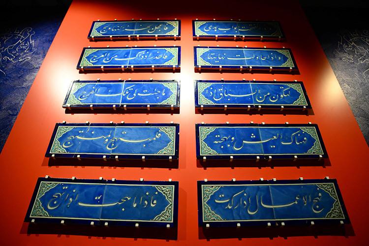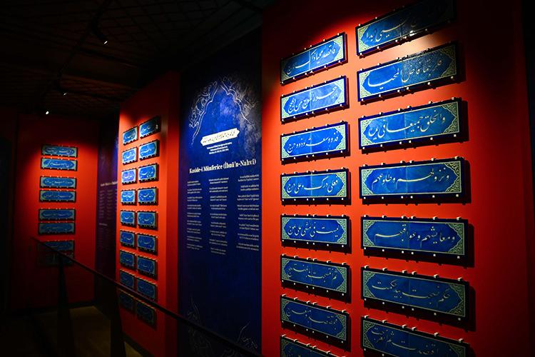 Galeri duvarlarında Osman Gazi’den Sultan II. Selim’e uzanan padişah adlarının sıralandığı iri yazılı çiniler yer alıyor. Ayrıca 11. yüzyılda Tunuslu şair İbnü’n Nahvi tarafından kaleme alınan “Kaside-i Münferice”den seçilmiş beyitlerin işlendiği çinileri de görebiliyor.